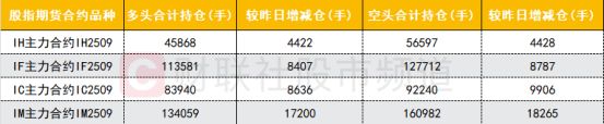 四大期指主力合约多空双方均大幅加仓,IH合约多空双方加仓数量基本相当,IF合约空头加仓数量略多,IC、IM合约空头加仓数量明显大于多头开云官方版入口。